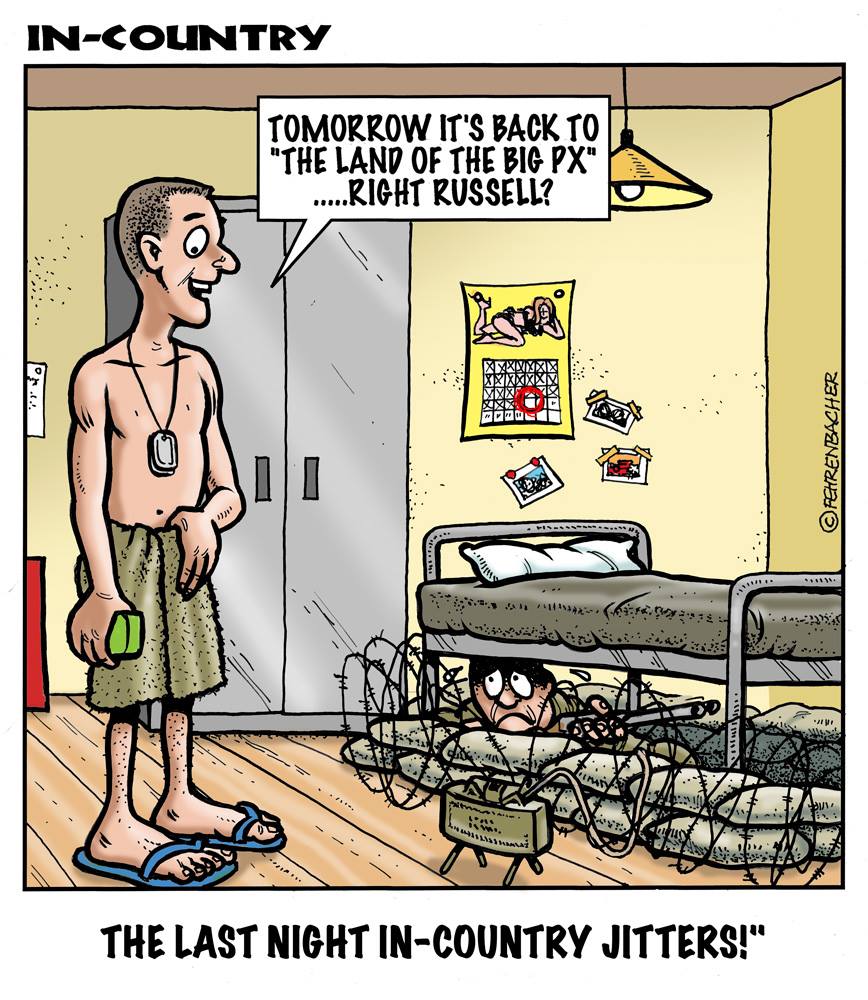 Phil enlisted in the Army in 1965 where he served for years in Vietnam. He became a graphic designer and has worked for the state of Oregon for 26 years. He retired in 2003 and started the Cartoon "In-Country". The cartoons reflect his experiences during his tour of duty in South Vietnam.